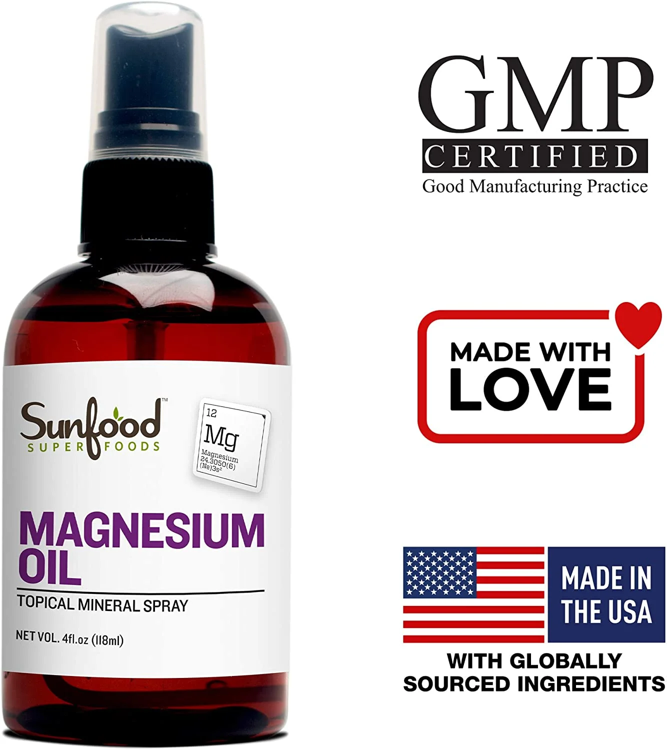 6 Pack SunFood Magnesium Oil – 6 x 118ml – Ingredients & Usage Guidelines
