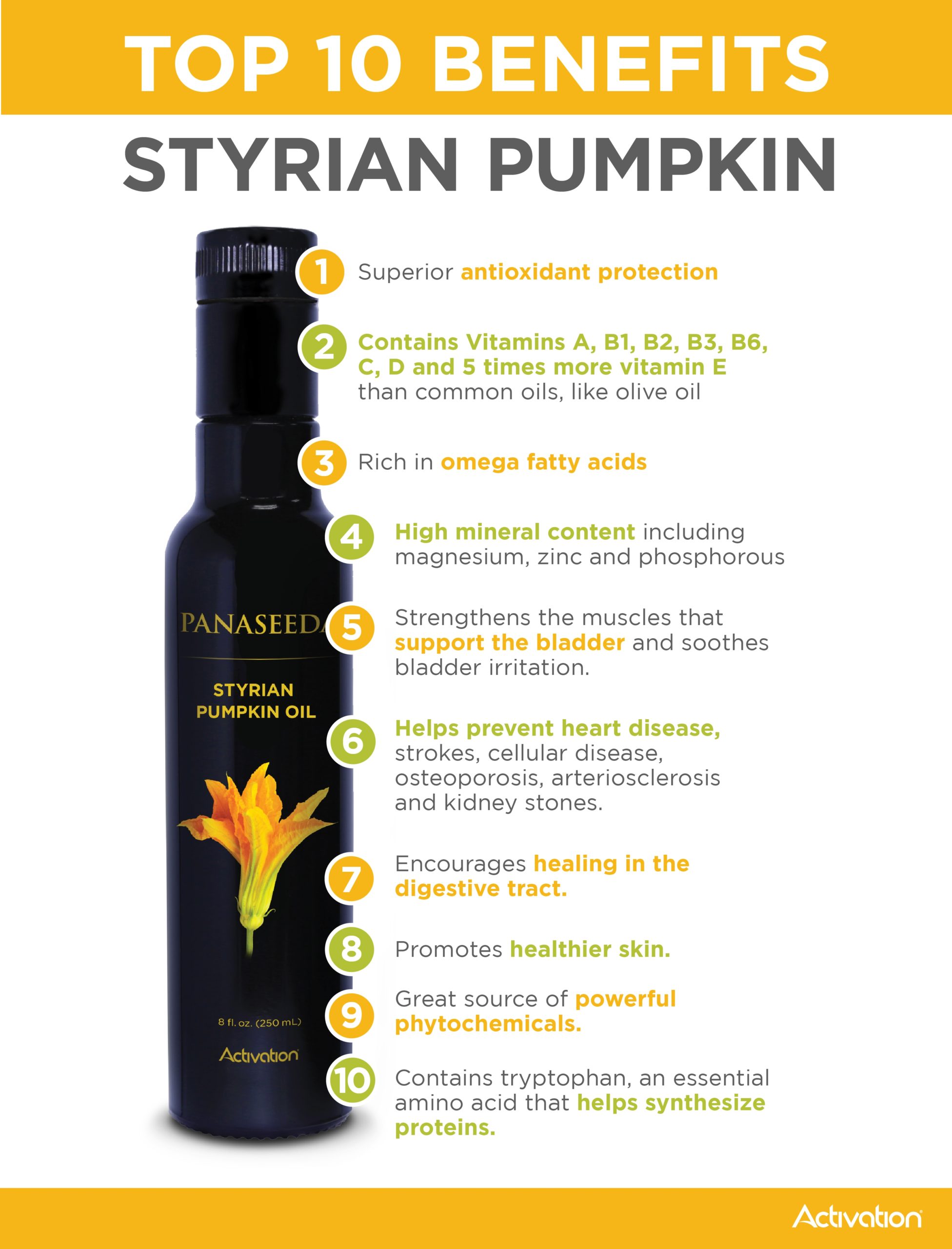 Introducing, Panaseeda Styrian Pumpkin Oil! This is by far the best-quality pumpkin oil on the planet. You will begin noticing the benefits of it almost immediately and the flavor will take your smoothies, salads dressings and other recipes to a whole new level.
